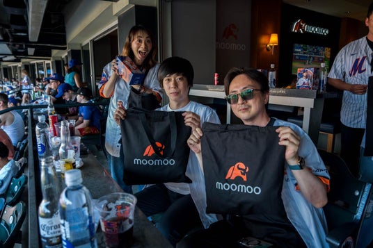 ニューヨーク・メッツの本拠地球場「シティ・フィールド」におけるmoomoo専用のVIPスイートルームにて。