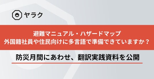生成AIを搭載した翻訳支援ツール(CATツール*)「ヤラク翻訳」を提供する八楽株式会社(本社:東京都渋谷区、代表取締役:坂西優、以下八楽)は、防災月間に合わせて「災害時の翻訳の重要性」に関する資料を公開しました。