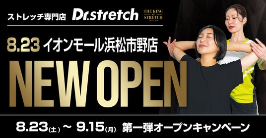 世界270店舗以上で独自技術「コアバランスストレッチ」を提供するストレッチ専門店『Dr.stretch』(株式会社nobitel、本社:東京都新宿区、代表取締役:黒川 将大)は、8月にイオンモール浜松市野店をオープンいたします。