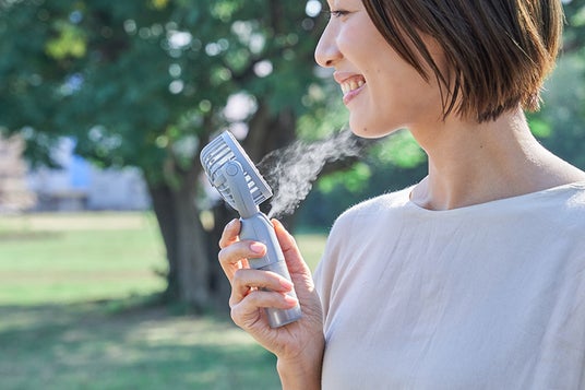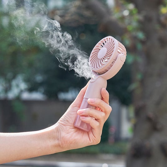 ミストモード機能を搭載したハンディファン。梅雨の蒸し暑さも真夏の猛暑も、ミストによる気化熱効果で肌の表面温度を下げ冷感が持続。