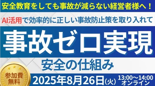 日本最大級の物流コンサルティングファーム 船井総研ロジ株式会社(本社:東京都中央区、代表:橋本直行、以下「船井総研ロジ」)は、2025年8月26日(火)13:00~14:00、 運送会社・物流会社の経営者を対象にした「 人手不足時代の最先端事故防止セミナー」をオンラインで開催しました。
