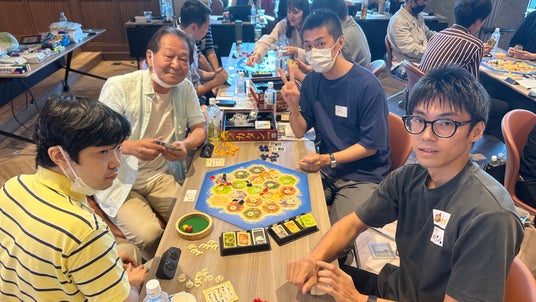「カタン最強企業を決める」という大目標はありつつ、普段カタンを遊んでいる職場の仲間といっしょに大会の練習を楽しんだり、カタンを通じた企業間交流を楽しんだりと、この大会が多くの企業や職場に新しい交流を育むことを願っております。