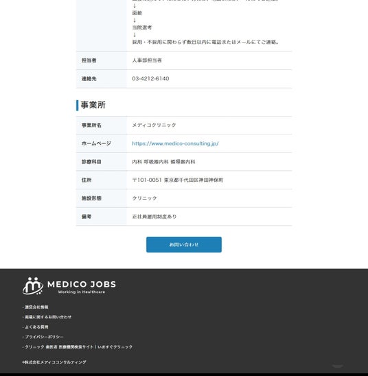 医療機関様お問い合わせフォーム:https://medico-jobs.jp/form-client/
