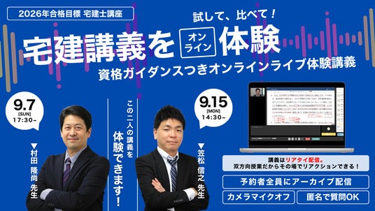 宅建士試験対策講座を展開しているTAC株式会社(東京都千代田区、代表取締役:多田敏男)は、9/1(月)に2026年の宅建士合格を目指す方向けの商品をリリースしました。