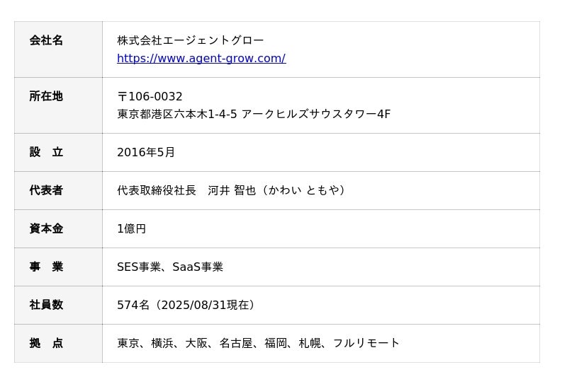 <参考:株式会社エージェントグローについて(2025年8月 現在)>