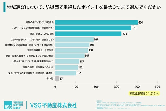 VSG不動産株式会社(所在地:東京都渋谷区、代表取締役:内田和希)は、「住宅購入における防災意識」に関する意識調査を実施しましたので、お知らせいたします。