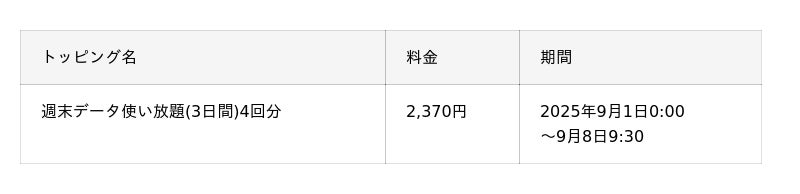 (注3)2025年6月1日から8月19日まで期間限定提供していた「データ使い放題(2時間)180円」の40回分相当。
