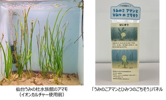 今回は、同水族館内にて、イオンカルチャーを使ったアマモの成長観察のほか、本取り組みに関する展示を行うことで来場者に自然と科学のつながりを伝えます。