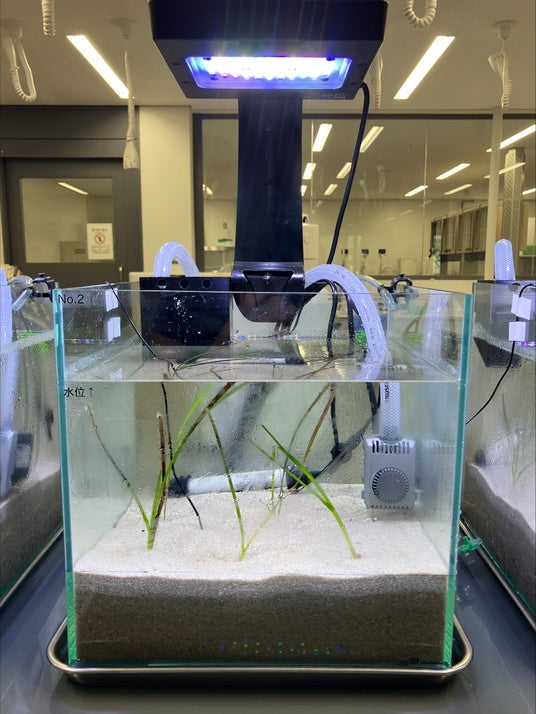 実験項目:・イオンカルチャーあり/なしでのアマモの生育比較(成長速度、光合成効率など)