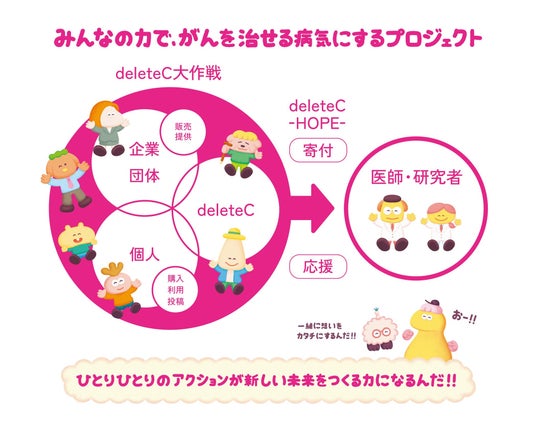 「がんを治せる病気にする日」を一日でも早く手繰り寄せることを目的に、2019年に設立。「ふだんの暮らしの中で、誰もが、がんの治療研究を応援できる社会」を目指して、4つの“カジュアルソーシャルアクション”(投稿・拡散、買い物、歩く、学び)を通じた「deleteC大作戦」などを行っています。