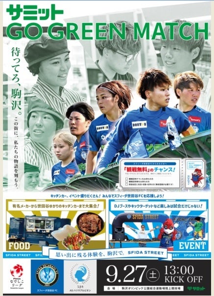 サミットがスポンサーを務めるスフィーダ世田谷FC※の公式戦「サミット GO GREEN MATCH」を、9月27日(土)に駒沢オリンピック公園総合運動場陸上競技場にて行います。この試合への来場者1名につき33円を、サミットがdeleteCに寄付します。試合へは、サミットストアの9月27日号チラシやサミットアプリに掲載する「招待券」で入場することができます。