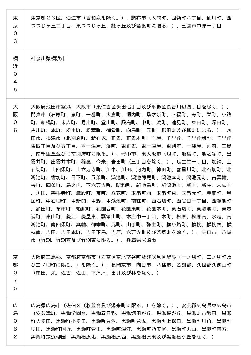 ※ご提供可能な市外局番は、ご契約者様またはご利用場所の住所の市外局番に限ります。