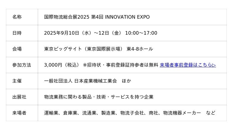 『国際物流総合展2025 第4回 INNOVATION EXPO』webサイトはこちらから▷