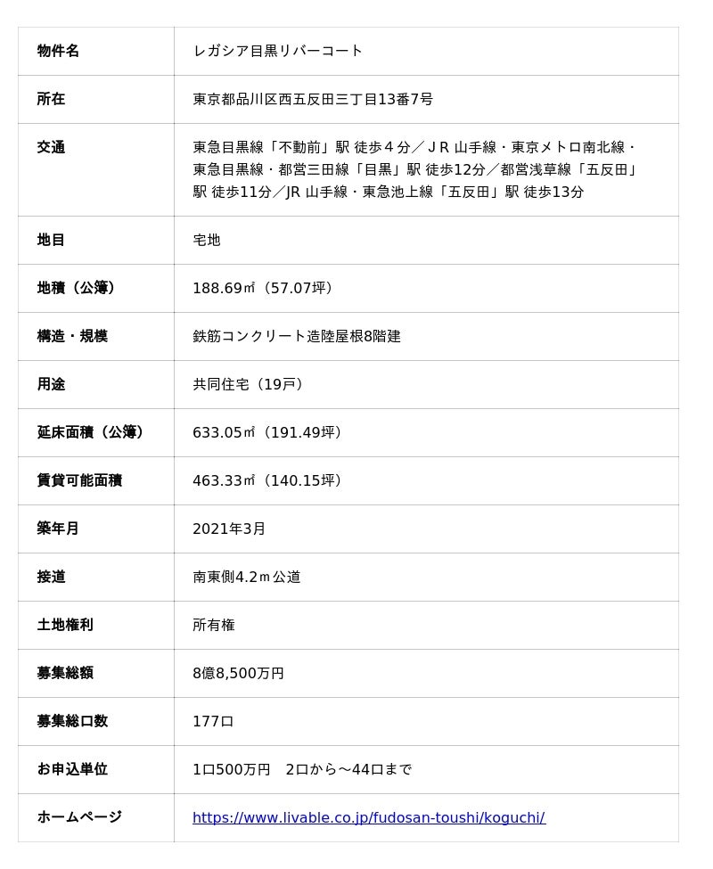 ■ 不動産小口投資「レガシア目黒リバーコート」について
