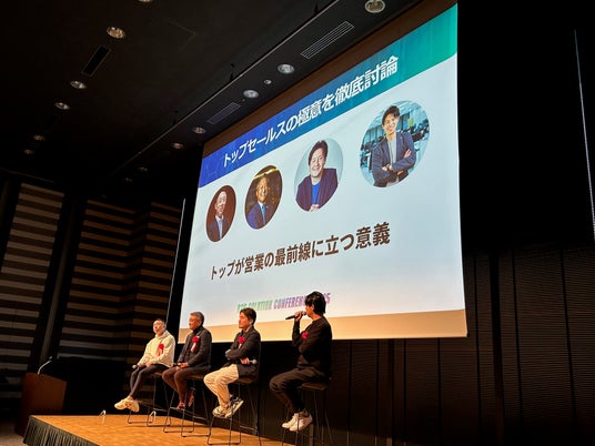 【琉球アスティーダスポーツクラブ株式会社 代表取締役会長兼社長 早川 周作氏】、【Zoom Communications Japan 代表取締役会長兼社長 下垣 典弘氏】、【株式会社ユーザーベース 代表取締役CEO 稲垣 裕介氏】、【株式会社Sales Crowd 代表取締役 水畑 裕貴氏】が登壇し、「トップセールスの極意を徹底討論」というテーマでセッションを行いました。トップが自ら営業の最前線に立って事業活動を行うことの大切さをディスカッションしてくださりました。