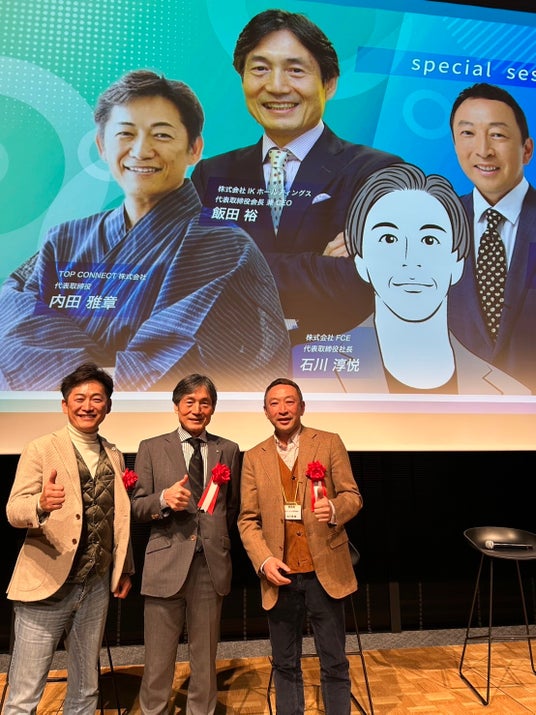 【TOP CONNECT株式会社 代表取締役 内田 雅章氏】、【株式会社IKホールディングス 代表取締役会長兼CEO 飯田 裕氏】、【花キューピット株式会社 代表取締役社長 吉川 登氏】、【株式会社FCE 代表取締役社長 石川 淳悦氏】が登壇し、「唯一無二のブランドを築く差別化戦略」というテーマでセッションを行いました。他社との差別化を図るため、どうやって自社のブランドを育てていくのか成功事例を共有いただきました。