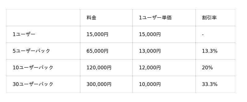 通常の契約よりも割安なユーザーライセンスのまとめ買いプランです。