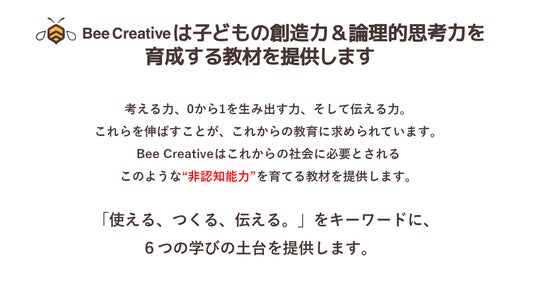 「Bee Creative」では、創造的なIT学習を通じて、6つの力を育てることを目指しています。