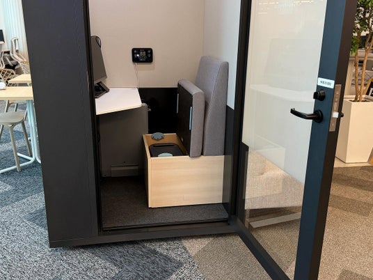 - 個室空間の提供:プライベートな通話も音漏れしない防音性や、ドアのガラス面をカーテンなどで遮蔽することで視界も遮り、安心して休憩・通話・着替えもできるスペースを提供いたします。