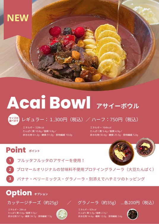 美味しいだけじゃない、プロテインCafeプロマールらしいヘルシーな工夫の詰まったアサイーボウルをぜひお楽しみください!
