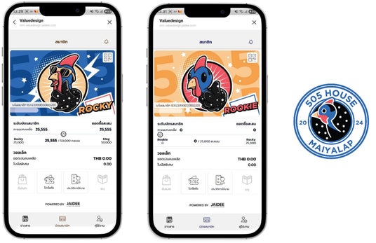 「505 House」は、2025年8月からリピート施策としてモバイルCRMサービスを導入されました。メンバーズカードは、1バーツのお支払いごとに1ポイントを付与。貯まったポイント数に応じて会員ランクがアップします。