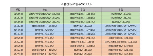 ~30代後半と50代前半をターニングポイントに睡眠の悩みが変化~
