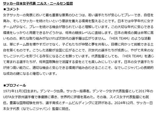 ■サッカー日本女子代表 監督・選手 / JFA女子委員長 コメント・プロフィール