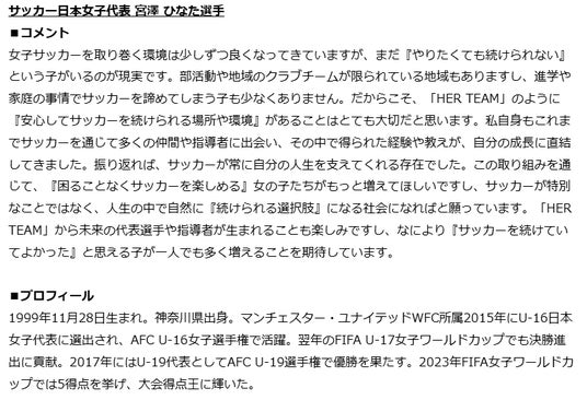 <参考資料> アディダス・JFA共同プロジェクト「HER TEAM」参加チーム情報(敬称略)