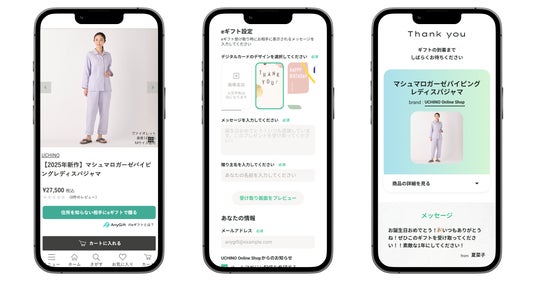 『AnyGift』は、LINEやメールを通じて住所を知らなくてもUCHINOの商品を簡単にプレゼントできるため、便利でスマートな贈り物体験を提供します。