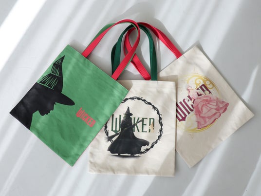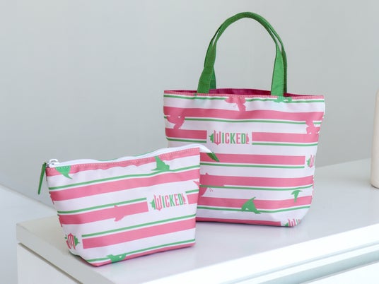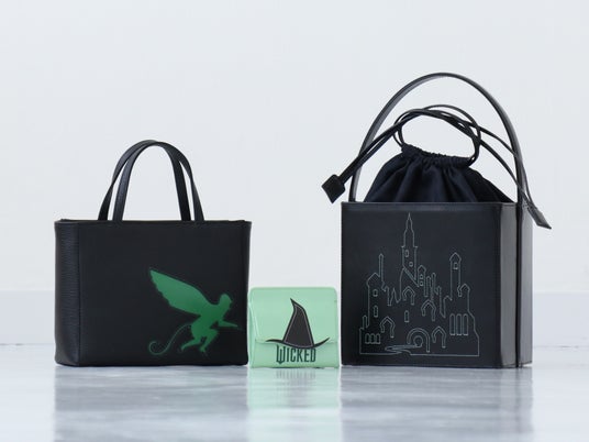 エメラルドシティに訪れるエルファバとグリンダをきらりと光るグリーンのステッチで表現したハンドバッグや、エルファバのイメージカラーであるブラックとグリーンを基調にした3アイテムをラインナップ。