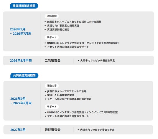 さらに、コーポレートベンチャーキャピタルである株式会社JR西日本イノベーションズによる出資など、資本提携等の可能性も視野に入れたプログラムです。