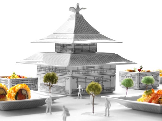 歴史ある古都の建物を磁器で再現。屋根を外すと中からお料理が現れる!古都うつわ「KINKAKU」「GOJU」がリバイバル発売