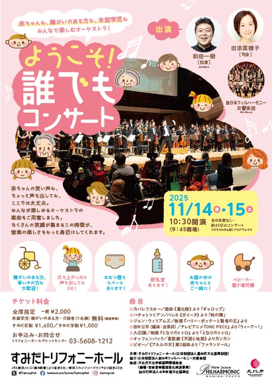 2025年11月14日・15日に、すみだトリフォニーホールにて『赤ちゃんも、障がいのある方も、未就学児も、みんなで楽しむオーケストラ!「ようこそ!誰でもコンサート」』を実施します。