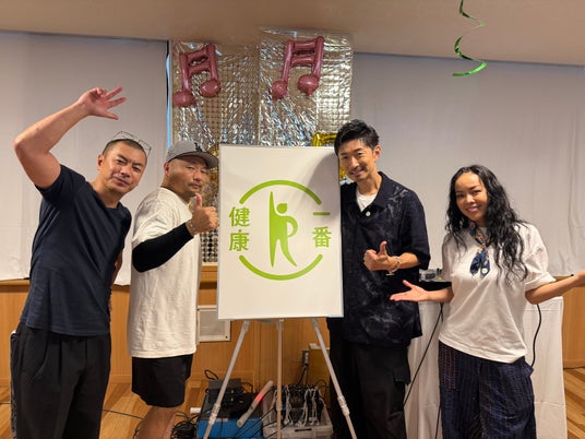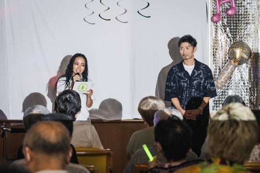 2025年8月5日(火)に、介護老人保健施設もくれんにて開催されたロマンディスコにサポーターのEXILE MAKIDAI 氏、Maasa 氏、SU(RIP SLYME) 氏が参加し、施設利用者や参加者に向けて健康について伝えました。