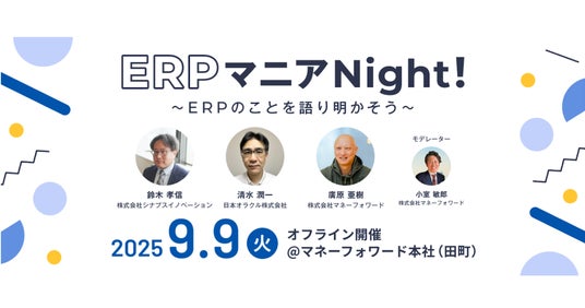 株式会社マネーフォワードは、2025年9月9日(火)に、ERPについて深く学び、語り合い、つながることを目的としたオフラインイベント「ERPマニアNight!」を、マネーフォワード本社で開催します。