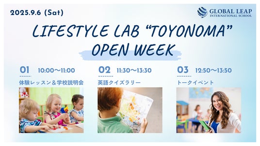 グローバルリープインターナショナルスクールが開校する豊洲セイルパーク内のインキュベーション施設 LIFESTYLE LAB "TOYONOMA" の開業に際し、イベントを実施します。