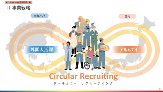 追加就労希望者等の国内労働ポテンシャルと外国人材活躍を支援し、"Circular Recruiting"による循環型採用で労働需給ギャップ解消の大いなる一助になることを目指します。