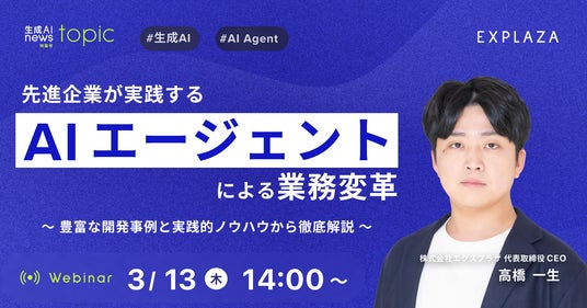 価値ある生成AIのプロダクト開発・社会実装を行う「EXPLAZA 生成AI Partner」をはじめ、デジタルコンテンツを自動生成するAIサービス「Mark」など、生成AIを活用した社会実装を行う株式会社エクスプラザ(本社:東京都港区、代表取締役:高橋 一生、以下「当社」)は、企業ごとに最適なAIエージェントを開発する「AI Agent」開発パッケージの提供を開始しました。
