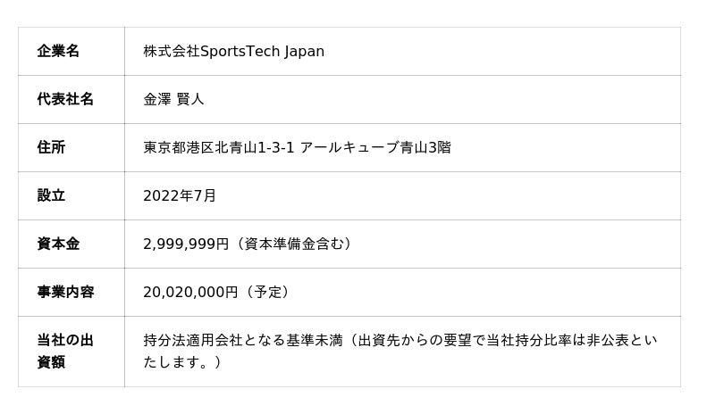 株式会社SportsTech Japanへの出資についてのお知らせ