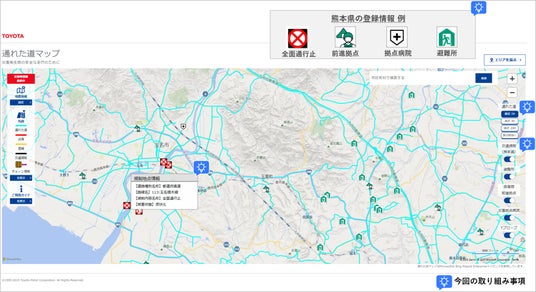 *3: 「通れた道マップ」は、トヨタのテレマティクスサービスをご利用の車両から収集したプローブ情報を基にした通行実績をリアルタイムで地図上に表示します。