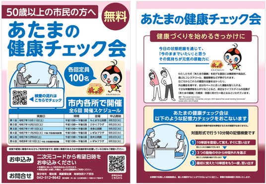 50歳以上の市民を対象に「あたまの健康チェック会」を開催/9月には講演会も