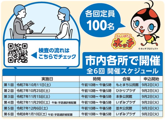 令和7年9月2日(火)から随時、予約制にて受検希望者の受付を開始いたします。
