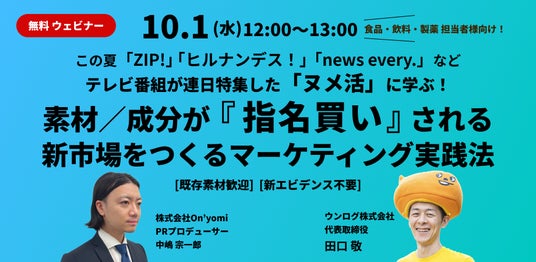 本セミナーでは「どうすれば自社素材/成分を生活者に選ばれる存在にできるのか?」をテーマに、オンヨミが取り組んだ「ヌメ活」をはじめ、オンヨミ、ウンログ両社で手掛けた複数の実践事例をもとに、