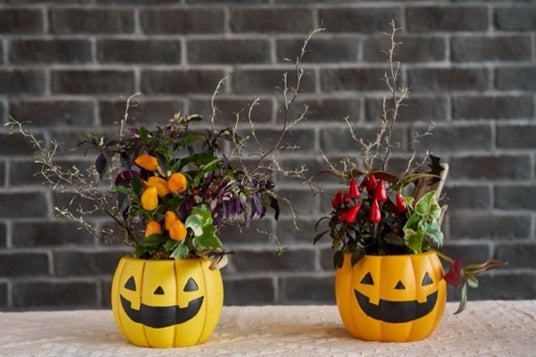 ジャックオランタンを模したポットに、多肉植物を植え込んだインテリア雑貨です。かぼちゃから植物があふれ出すような見た目がユーモラス。インテリアに置くことで、空間が一気にハロウィンらしい雰囲気に早変わりします。