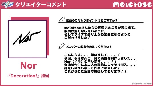 ~Nor「melctose『Decoration!』」担当~