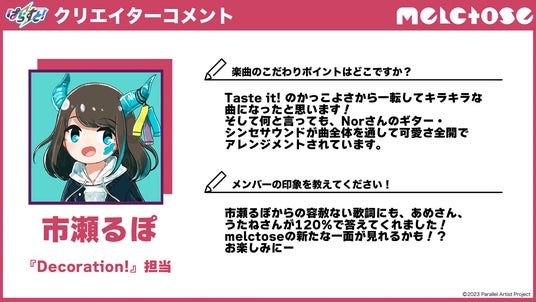 ~市瀬るぽ「melctose『Decoration!』」担当~