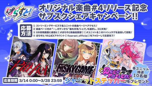 配信リリース、「ぱらすと!」公式YouTubeチャンネルでのプレミア公開は3/14(土)から順次開始!ぜひご視聴ください!