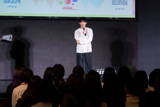 冒頭の挨拶の後、ステージ上の大きなスクリーンで、津田さんがナレーションを担当したWEB CMが初お披露目されました。