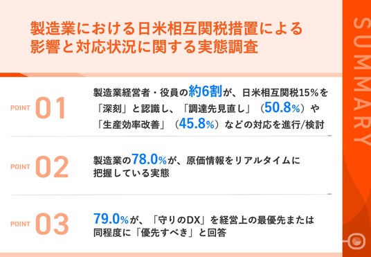 【日本への相互関税15%に、製造業の対応は】約6割が「深刻な影響」と回答 原価情報のリアルタイム把握など、利益を守る「守りのDX」に注目集まる