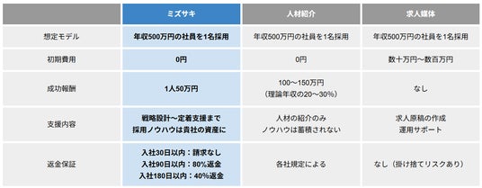 ミズサキ株式会社(本社:東京都新宿区、代表取締役:藤村 俊太郎)は、採用コストに悩む中小企業を対象とした「成果報酬型 採用代行サービス」の提供を開始したことをお知らせします。